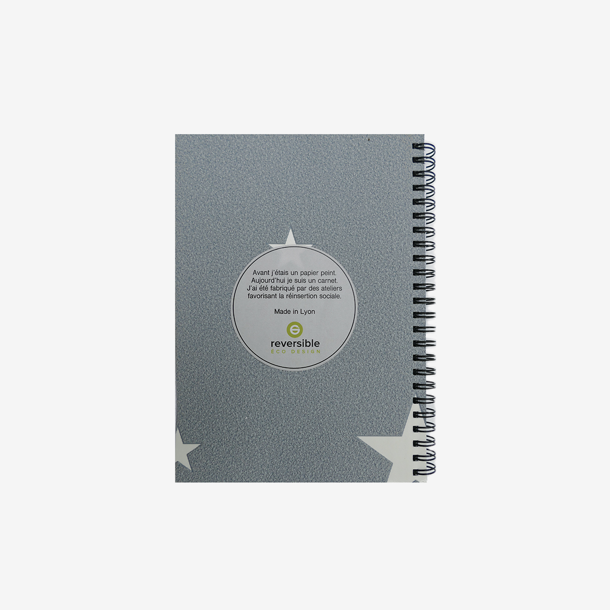 Avec son étoile, ce joli carnet en chute de papier peint, a été fabriqué à partir de la récupération de catalogues d’échantillons. Et ils sont magnifiques ces papiers peints ! Chaque exemplaire est unique avec son propre univers de couleur. Leur diversité offre une opportunité merveilleuse et vos plus belles pensées pourront s’écrire au fil de ces 50 pages tantôt blanches … lignées ou colorées.