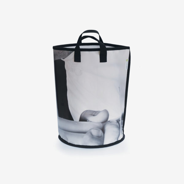 Surprenante en noir et blanc, mais surtout pratique et utile, cette corbeille en bâche publicitaire recyclée, s’adapte à tout ! Fourre-tout ou sac à linge, ses poignées vous permettent de passer d’une pièce à l’autre avec facilité. Son visuel unique et son éco-design abouti apporte à vos intérieurs une touche écolo originale ! Entièrement fabriquée en France par un atelier favorisant la réinsertion sociale … et hop l’affaire est dans le sac !