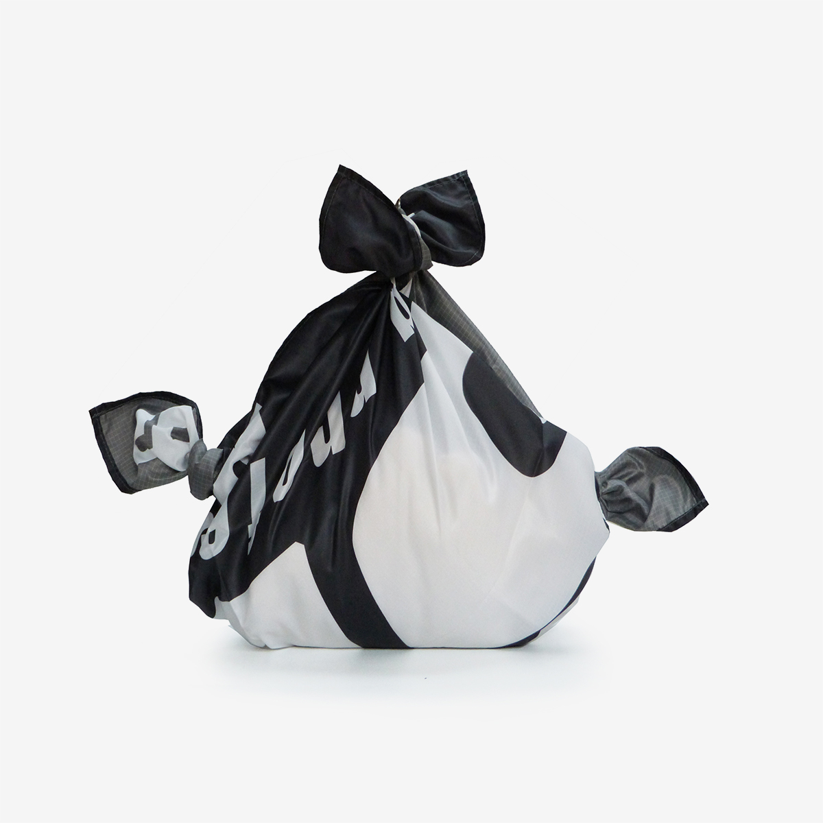 En noir et blanc, ce Furoshiki en toile publicitaire recyclée, se transforme en quelques noeuds en un sac pratique et utile. Inspiré de la tradition japonaise, le « Sakanoeuds » est une alternative écologique au sac plastique, il se réinvente, se recréé à chaque nouveau noeud et peut tout transporter. Fabriqué en France … Si ça ce n’est pas écolo !