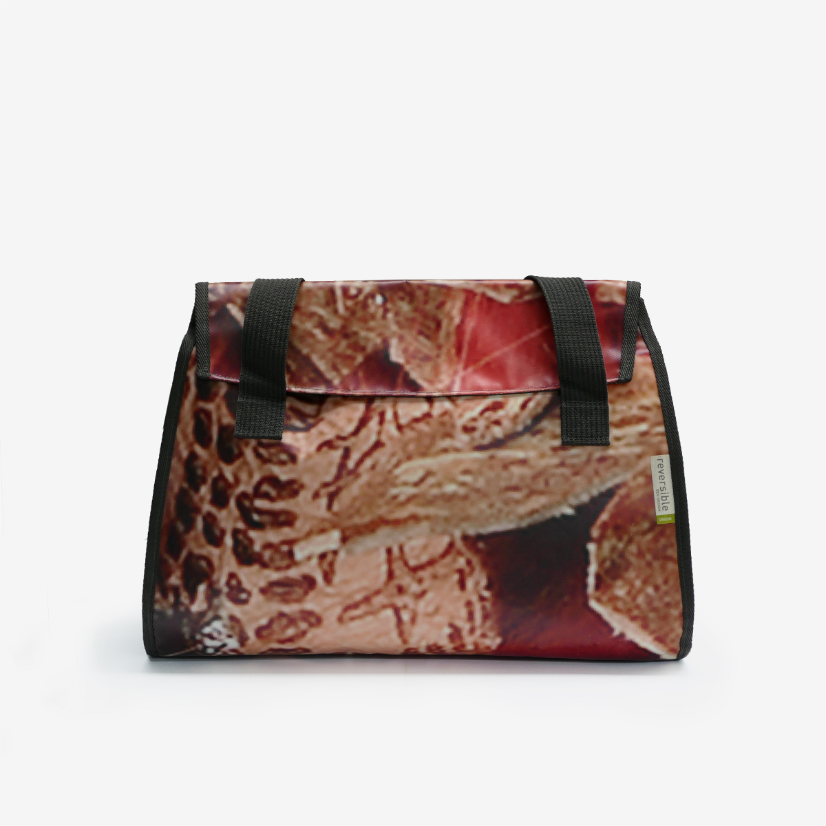 Avec ses teintes d’automne, ce sac weekend en bâche publicitaire recyclée me donne un look qui n’appartient qu’à moi. Mon Sakelly fait de moi une fashionista responsable ! Pratique pour les escapades mais aussi au quotidien, il est écolo et tendance. Sa forme élégante, se porte à la main ou à l’épaule. Il est unique … Mode et développement durable vont de pair. Un détournement réussi et un upcyling assuré en France, par des ateliers favorisant la réinsertion sociale.