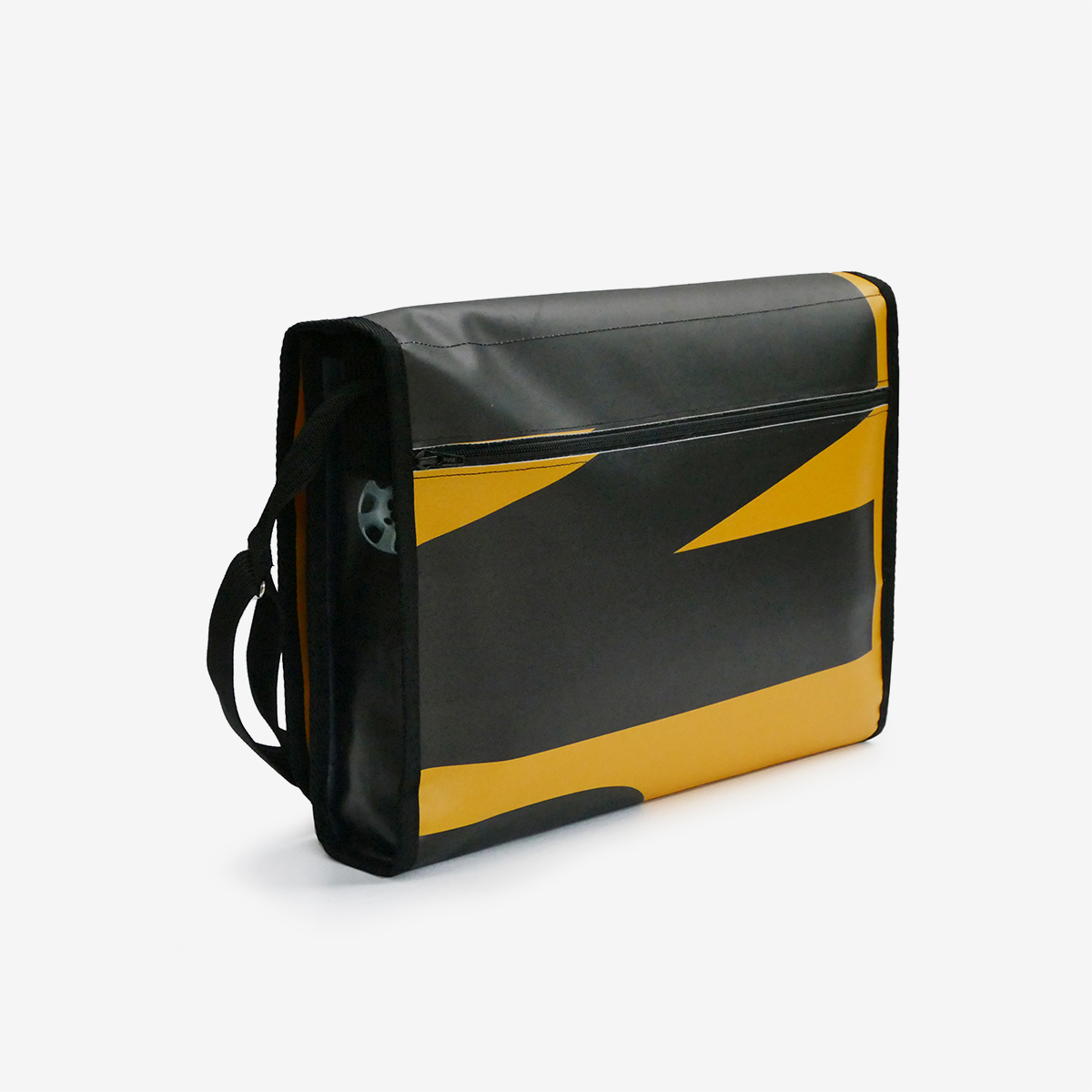 En orange et noire, avec cette Sacoche en bâche publicitaire recyclée, vous pourrez balader dossiers et ordinateur à pied ou à vélo. Ce sac de cours vous donne un look qui va faire des envieux. Portée à l’épaule ou en bandoulière, mode et développement durable vont de pair … Affichez vos valeurs. Chaque exemplaire est unique. Un détournement réussi et un upcyling assuré en France, par des ateliers favorisant la réinsertion sociale. Votre esprit écolo va en épater plus d’un !