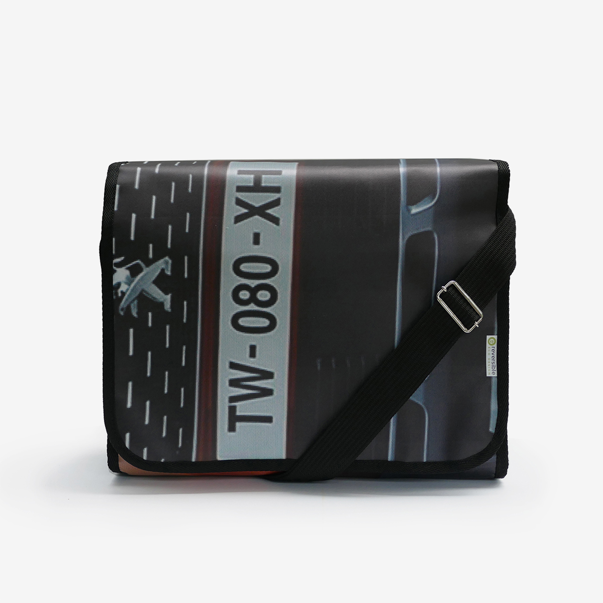 Avec cette Sacoche en bâche publicitaire recyclée imprimée de sa plaque d’immatriculation, vous pourrez balader dossiers et ordinateur à pied ou à vélo. Ce sac de cours vous donne un look qui va faire des envieux. Portée à l’épaule ou en bandoulière, mode et développement durable vont de pair … Affichez vos valeurs. Chaque exemplaire est unique. Un détournement réussi et un upcyling assuré en France, par des ateliers favorisant la réinsertion sociale. Votre esprit écolo va en épater plus d’un !